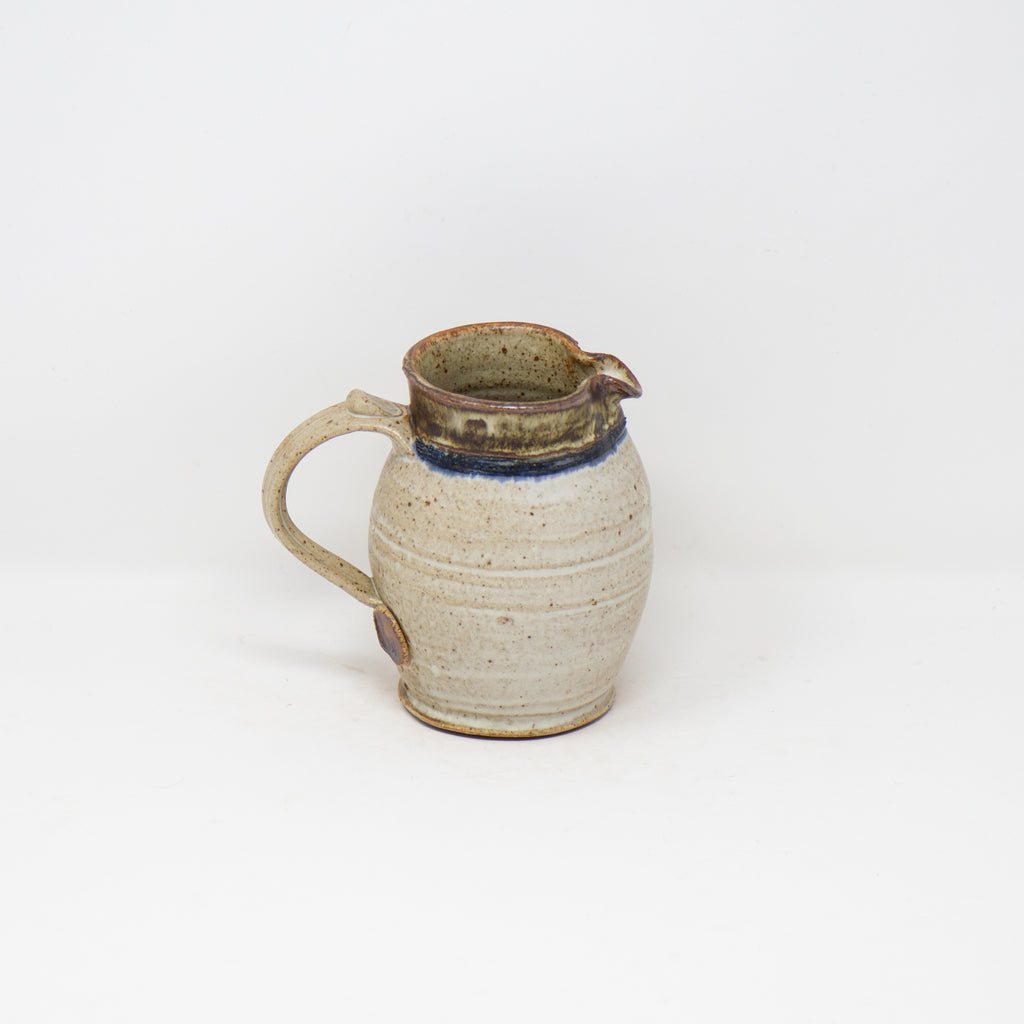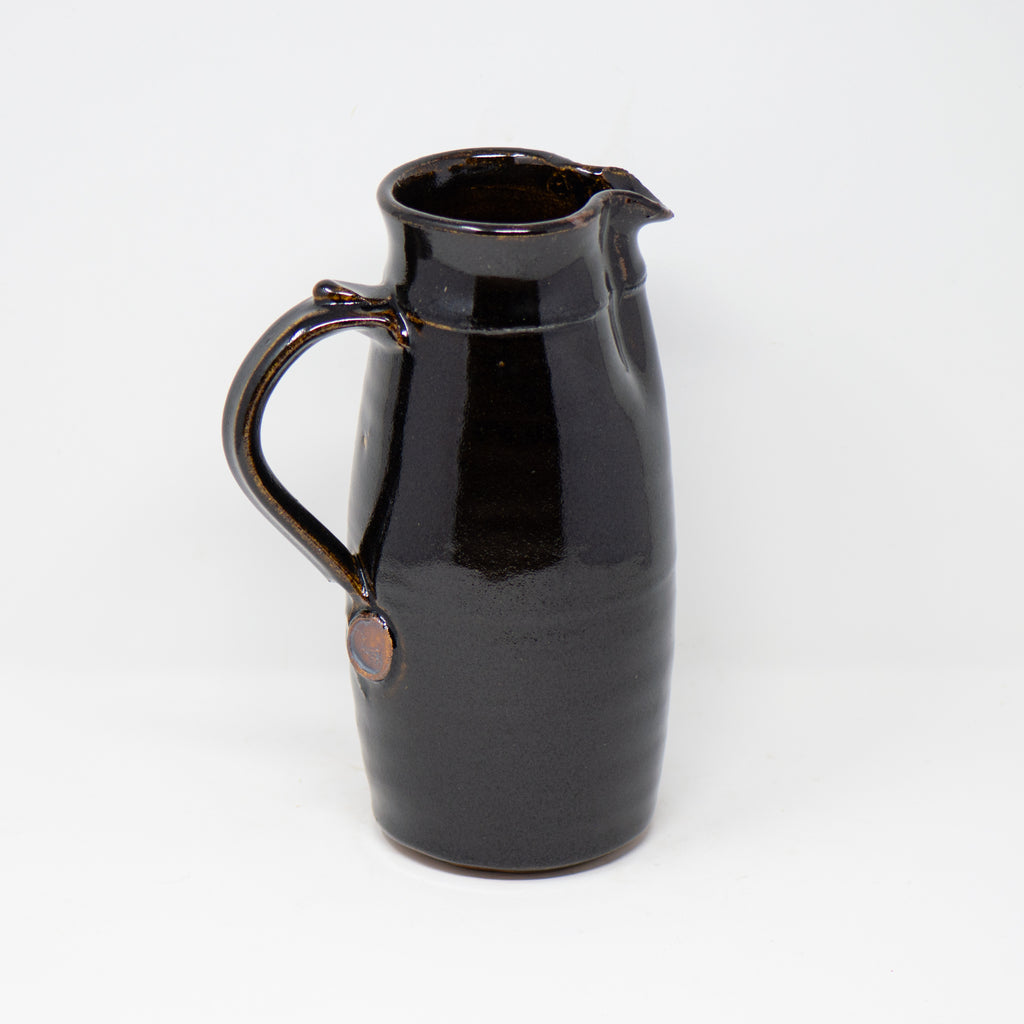 Generous pitcher in a variety of color and size options. A classic Gene Tokheim design, master of the elegantly pulled handle and well balanced wheel-thrown pottery. This is a popular wedding present with both givers and recipients; it enhances any tableware collection as it travels from party beverages to wild flower arrangements.